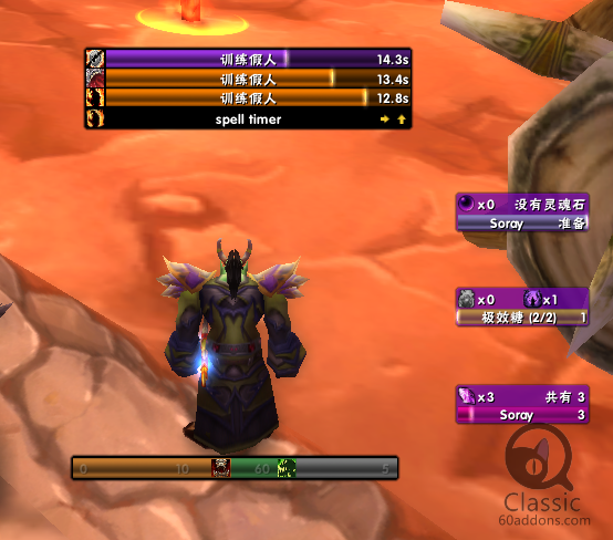 灵魂石 扫描团队的灵魂石 对团队全部绑定的石头计时 尝试发现正在制作石头的术士 鼠标划过可以看到术士制作灵魂石级别 灵魂石绑定/过期是显示信息 这个模块也能显示团队总装了ora/ctra的全部职业的所有技能CD 也可以显示团队中所有职业冷却完成了的技能 设定上一条后,这个功能只在raid时打开 点击框体可以切换显示 显示可用灵魂石数量 标题栏显示最短和最长的灵魂石计时 做石头的时候提醒其他术士也做 在界面重载/小退后仍然能持续计时,除非你重启电脑----这个强
